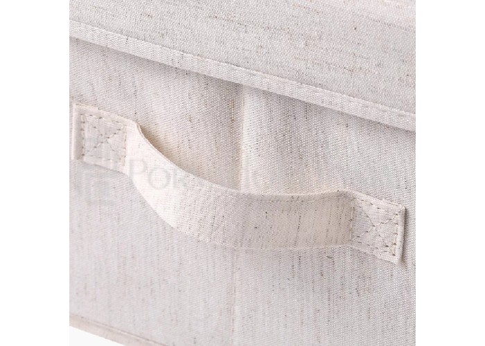 Качественный и стильный бокс выполнен из натуральной ткани, каркас пластиковый. Бокс имеет подклад, ручки по бокам и съемную крышку.