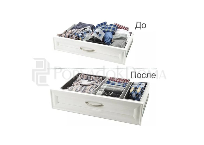 Нет ничего удобнее для организации порядка во взрослых и детских комодах чем наборы 6в1. Наборы-конструкторы подойдут для любых размеров полок и для любой категории одежды. Обеспечит порядок и полный обзор в ящиках.