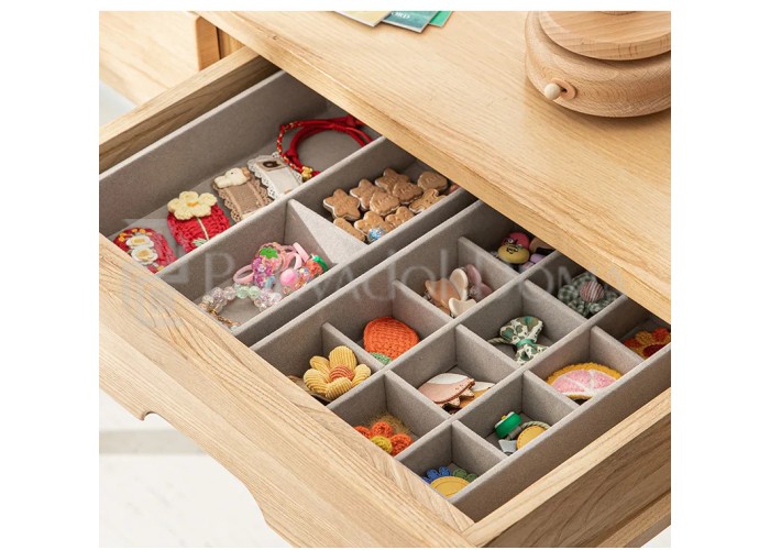 Если в вашем комоде предусмотрен выдвижной ящик для украшений - то вам просто необходим набор шкатулок, который поможет организованно распределить украшения в этом ящике.